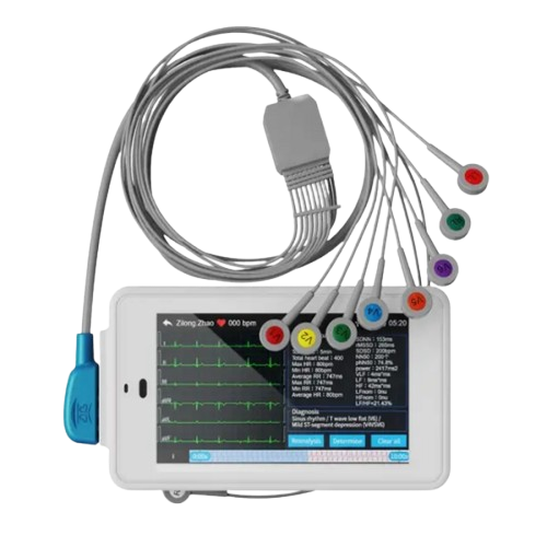 • Real-Time Visual Feedback: Features a high-resolution display (OLED or color touchscreen) that shows live ECG waveforms, battery status, and lead connection quality to ensure accurate data collection .